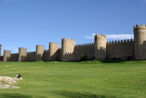 Distinctively known by its medieval walls, Ávila is sometimes called the Town of Stones and Saints, and it claims that it is one of the towns with the highest number of Romanesque and Gothic churches per capita in Spain.[5] It has complete and prominent medieval town walls, built in the Romanesque style; writer José Martínez Ruiz, in his book El alma castellana ("The Castilian Soul"), described it as "perhaps the most 16th-century town in Spain". The town is also known as Ávila de los Caballeros, Ávila del Rey and Ávila de los Leales ("Ávila of the knights", "Ávila of the king", "Ávila of the loyal ones"), each of these epithets being present in the town standard.