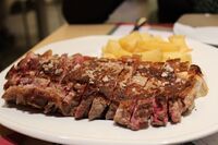 This is a grilled ribeye steak, best cooked rare, which can be enjoyed in any hotel in the town. It is made from Avileña-Negra ibérica, an indigenous black cow known for its excellent meat, whose fame transcends the borders of the province and the country.