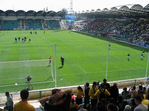 Football (soccer) club MŠK Žilina plays in the top Slovak division Fortuna liga and is one of the most successful teams in recent years, having won five domestic titles and been runners-up three times between 2001 and 2010. The team's colors are the yellow and green, taken from the city's flag. Home games are played at the Stadium Pod Dubňom which is situated at the edge of city center in the neighborhood of the ice hockey stadium. They played in the 2010-11 UEFA Champions League in the group stage for the first time in their history.