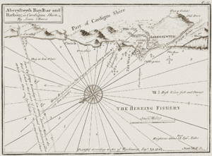 ![]() خليج آبريستويث من مسح في سنة 1748 قام به لويس موريس (1701–1765) |