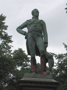 The nickname "Iron Duke" originated from this period, when he experienced a high degree of personal and political unpopularity. Its repeated use in Freeman's Journal throughout June 1830 appears to bear reference to his resolute political will, with taints of disapproval from its Irish editors.[73][74][75] During this time, Wellington was greeted by a hostile reaction from the crowds at the opening of the Liverpool and Manchester Railway.[76]