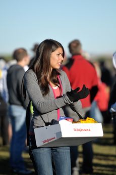 Woman selling cameras, memory cards & batteries at the Albuquerque International Balloon Fiesta, 2010.