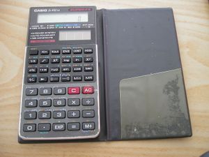 Casio FX-992VB, a scientific calculator from the late 1980s, uses solar power together with a button cell