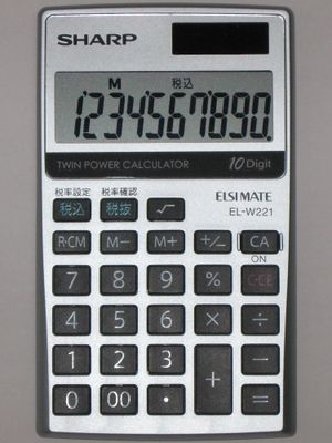 An electronic pocket calculator with a LCD seven-segment display, that can perform basic arithmetic operations