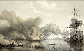 - ^ Dans ses Mémoires (éd. Hachette, 1879, vol. 1, édition, notes et appendices par A. de Boislisle, p. 50-54), Saint-Simon fait un récit détaillé du contexte politique de cette bataille navale.