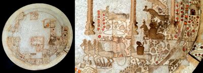 ![]() Plate found at Ai-Khanoum with Cybele on a chariot drawn by a lion, with a crescent moon and star in the background. | |