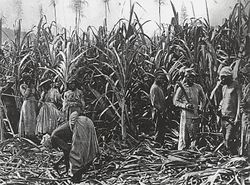 طرحت قوانين إلغاء العبودية في المستعمرات الأوربية سنة 1834 مشكلة في عملية إنتاج السكر، وهي من العمليات الإنتاجية التي كانت تعتمد بشكل كبير على الرقيق.[6][13] لينشأ طلب على أيدي عاملة رخيصة، في حين كان الرقيق يتفاوضون على أجور أعلى وظروف معيشية أفضل. وكنتيجة لذلك تصورت الحكومة البريطانية خطة بديلة في إحلال قوى عاملة من أنحاء محتلفة في العالم بالقوة العاملة الإفريقية. وأحضرت الموجة الأولى من العاملين الزراعيين بعض الجزر البرتغالية مثل جزر ماديرا إضافة إلى رقيق من الولايات المتحدة وفقراء من الصين.[14] وعلى الرغم من تغير إثنيات العمال إلا أن ظروف المعيشة بقيت صعبة وفي النهاية لم يستطع العمال أن يصمدوا في زراعة كاسافا والإقامة.[11]