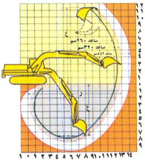 لهذه المعدات والمكنات في العادة أبعاد عامة أساسية ثابتة مثل عرض هيكلها وارتفاعه وآليات السير، وأبعاد خاصة تتغير بتغير أجهزة العمل مثل عرض المحراث وعمقه، أو طول امتداد سهم الرافعة وارتفاعه، أو امتداد ذراع الحفارة مع المغْرفة، ويبين الشكل (3) أبعاد حفارة هدروليكية بمغرفة وحيدة ومجال عملها. وإن الأبعاد الأساسية الثابتة تكون في العادة في حدودها الدنيا الممكنة، لأنها تعين حجم المكنة ووزنها وتسهّل مناورتها ونقلها، وهي تقع في الحدود النظامية التي تسمح بنقلها على السكك الحديدية أو الطرق العامة. أما إذا تجاوزت أبعادها الحدود النظامية فتُنقل مفككة إلى أجزاء، أما أبعاد أجهزة العمل وامتداد حركتها ومجالها فتقع في النطاق الذي يحقق مهمة المكنة واستقرارها في أثناء العمل.