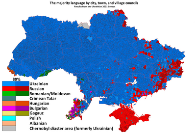 - ^ "Всеукраїнський перепис населення 2001. Розподіл населення за національністю та рідною мовою" (in الأوكرانية). Archived from the original on 2019-10-24. Retrieved 2014-08-21.