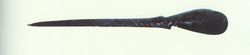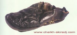 ![]() سيف رسول الله طوله 100 سم وله مقبض من الجلد ووزنه 930 جرام |