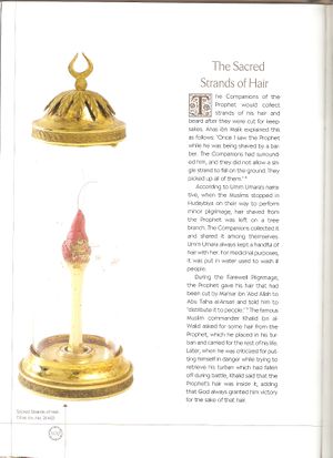 قطعة من عصى الرسول وشعرة من ذقنه.