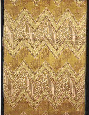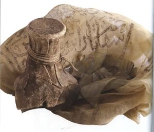 ![]() عباءة السيدة فاطمة الزهراء بنت رسول الله وهي مصنوعة من وبر الجمل بأكمام واسعة ذات بطانة زرقاء في بعض أجزاءها وبها أزرار في المقدمة وقد تبرعت بها لقصر طوب قبو باسطنبول الاميرة فاطمة وريثة خانية القرم. |