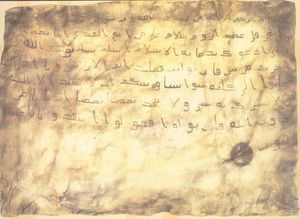 ![]() رسالة رسول الله الى حارث بن أبو شامير الغساني مذيلة بختم محمد رسول الله | |