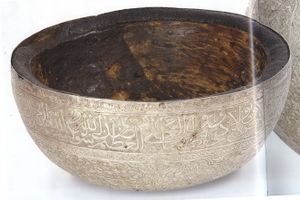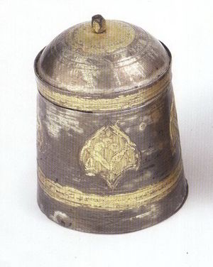![]() الإناء الذي قدم فيه سهل بن سعد الماء لرسول الله وقد غطي بالفضة في القرن السادس عشر واصبح ملكاً للخليفة عمر بن عبد العزيز. |