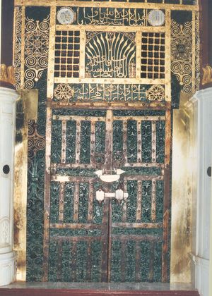 ![]() أول غطاء لقبر الرسول اُرسـِل من اسطنبول للمدينة في عهد السلطان أحمد الأول. |