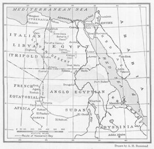خريطة مسار الرحلة العلمية كما رسمها بقياساته الدقيقة في مقالته عن رحلته والتي نـُشرت في عام 1924