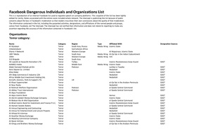 أخبار:إنترسبت تسرب قائمة فيسبوك للأشخاص/الكيانات الخطرة