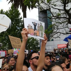 أخبار:المتظاهرون التشيليون يرفعون كرتون لكارلوس لطوف عن تحرش الشرطة بالمتظاهرات