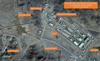 أظهرت الصور الساتلية التي التقطتها شركة بلانيت، وهي شركة تصوير تجارية، بين 26 أكتوبر و9 نوفمبر ، حدوث عملية حرق في منشأة بالقرب من الدوادمي، السعودية، وفقًا لباحثين في معهد ميدلبري للدراسات الدولية، الذين أخبروا شبكة سي إن إن أن هذه هي "الأولى دليل لا لبس فيه على أن المنشأة تعمل لإنتاج صواريخ".