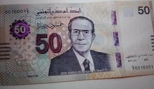 فئة 50 دينارًا تونسيًا تحمل صورة الهادي نويرة.