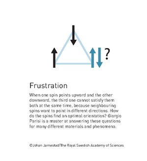 تعتبر هذه الكرات المضغوطة نموذجًا بسيطًا للزجاج العادي والمواد الحبيبية، مثل الرمل أو الحصى. ومع ذلك، كان موضوع عمل باريزي الأصلي مختلفًا نوعًا فقد كان عن «الزجاج الغزل(زجاج سپين– spin glass». ويعد الزجاج الدوار هذا نوع خاص من السبائك المعدنية حيث يتم خلط ذرات الحديد بشكل عشوائي، على سبيل المثال، في شبكة من ذرات النحاس. على الرغم من وجود عدد قليل من ذرات الحديد، إلا أنها تغير الخصائص المغناطيسية للمادة بطريقة جذرية ومحيرة للغاية. إذ تتصرف كل ذرة حديد كمغناطيس صغير، ويطلق على الذرة الواحدة "غزل (سپين)"، وتتأثر بذرات الحديد الأخرى القريبة منها. في المغناطيس العادي، تدور جميع الدورات في نفس الاتجاه، ولكن في الدوران الزجاجي؛ تريد بعض أزواج الدورات أن تشير في نفس الاتجاه وأخرى تريد أن تشير في الاتجاه المعاكس وتسمى هذه الظاهرة ب « الإحباط – frustration ».