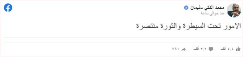 إلا أنه عاد وأضاف في تعليق لاحق: الامور تحت السيطرة والثورة منتصرة.