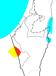 وحسب خطة الأمم المتحدة لتقسيم فلسطين، فإن المنطقة كانت مخصصة كجزء من الدولة العربية. وفي 1948 استخدم الجيش المصري المنطقة كقاعدة عسكرية. وفي معركة العوجة ضمن حرب فلسطين 1948، فقد استولت عليها الكتيبة 89 للكوماندو الميكانيكي، التي كانت تضم فصيلة من المتطوعين من إنگلترة وألمانيا وهولندا وروديسيا وجنوب أفريقيا والولايات المتحدة.[9]