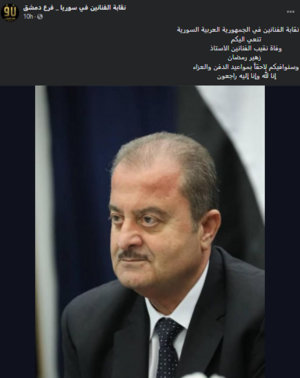 - ^ نقابة الفنانين عبر صفحتها على فيسبوك (2021-11-18). "نقابة الفنانين في الجمهورية العربية السورية تنعي اليكم وفاة نقيب الفنانين الاستاذ زهير رمضان". www.facebook.com.