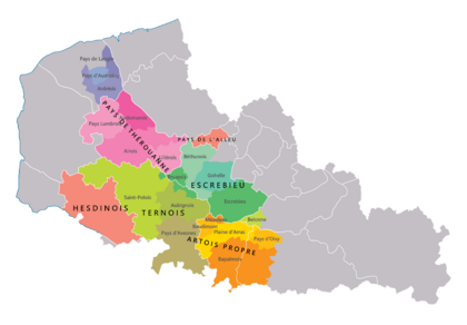 ![]() أرتوا (بالقرمزي) داخل منطقة أراضي كاليه الشمالية. |