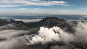 The name Kuril originates from the autonym of the aboriginal Ainu, the islands' original inhabitants: kur, meaning 'man'.[6] It may also be related to names for other islands that have traditionally been inhabited by the Ainu people, such as Kuyi or Kuye for Sakhalin and Kai for Hokkaidō. In Japanese, the Kuril Islands are known as the Chishima Islands (Kanji: 千島列島 Chishima Rettō تـُنطق [tɕiɕima ɾeꜜttoː], literally, 'Thousand Islands Archipelago'), also known as the Kuriru Islands (Katakana: クリル列島 Kuriru Rettō [kɯɾiɾɯ ɾeꜜttoː], literally, Kuril Archipelago). Once the Russians reached the islands in the 18th century they found a pseudo-etymology from Russian kurit′, курить 'to smoke' due to the continual fumes and steam above the islands from volcanoes.