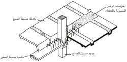 تُغطى هذه البلاطة من الكمرات والجيزان بطبقة من الخرسانة، أو يملأ الفراغ بين الكمرات بقطع الآجر أو الكتل الإسمنتية المفرّغة. ويتم تجميع مختلف هذه المقاطع المعدنية لربط أجزاء الأرضية بالبراغي أو باللحام، ويمكن أن يتم هذا التجميع مباشرة بين المقاطع أو باستخدام مقاطع مساعدة مثل القضبان المجنبة بشكل زاوية L، عندما تكون ارتفاعات هذه المقاطع مختلفة.