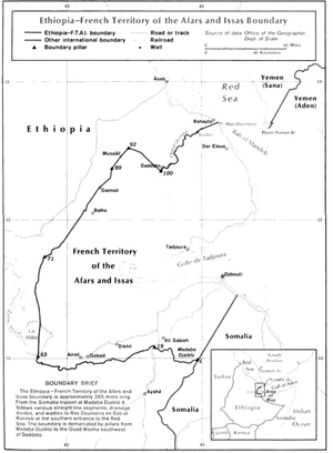 ![]() Map of the FTAI–Ethiopia border, 1977; much of it was marked with boundary pillars. |