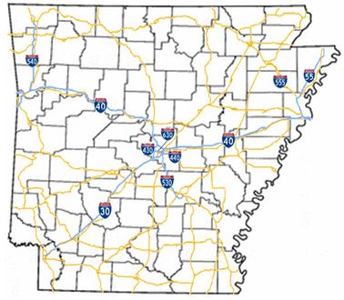 خريطة الولايات المتحدة، موضح فيها أركنسا