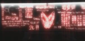الرموز التي يراها ديزموند على الحائط بسبب تأثير جهاز الأنيمس (اضغط للتكبير).
