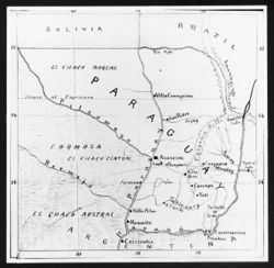 Map of Paraguay, drawn by John Lane, brother of William Lane. New Australia and Cosme were both south-east of Asunción, the capital of Paraguay, and close to the town of Villarica.