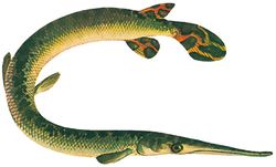 تتميز بسهولة بجسمها المتطاول وغطاء الجسم المؤلف من الحراشف اللامعة فائقة المتانة. لم يبق منها حياً إلا سبعة أنواع. وقد تميزت هذه المستحاثات الحية بصفات خاصة مثل الفكوك الطويلة جداً بشكل الخطم (حيزوم) المرصع بأسنان حادة مخروطية، تستعمل لالتقاط الأسماك الأخرى، والذيل المتناظر تقريباً. وهي تحمل زعنفة ظهرية فوق الزعنفة الشرجية مباشرة. لون الظهر رمادي أخضر، أما الجانبان والبطن فلونه فاتح (الشكل 1).