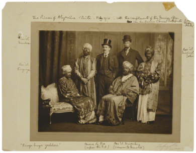 White minstrel shows featured white performers pretending to be black people, playing their versions of 'black music' and speaking ersatz black dialects. Minstrel shows dominated popular show business in the U.S. from that time through into the 1890s, also enjoying massive popularity in the UK and in other parts of Europe.[37] As the minstrel show went into decline, blackface returned to its novelty act roots and became part of vaudeville.[27] Blackface featured prominently in film at least into the 1930s, and the "aural blackface"[38] of the Amos 'n' Andy radio show lasted into the 1950s.[38] Meanwhile, amateur blackface minstrel shows continued to be common at least into the 1950s.[39] In the UK, one such blackface popular in the 1950s was Ricardo Warley from Alston, Cumbria who toured around the North of England with a monkey called Bilbo.[40]