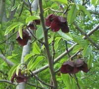 Asimina is a genus of small trees or shrubs described as a genus in 1763.[2][3] Asimina is the only temperate genus in the tropical and subtropical flowering plant family Annonaceae.[4] Asimina have large, simple leaves and large fruit. It is native to eastern North America and collectively referred to as pawpaw. The genus includes the widespread common pawpaw Asimina triloba, which bears the largest edible fruit indigenous to the United States.[5] Pawpaws are native to 26 states of the U.S. and to Ontario in Canada.[5][6] The common pawpaw is a patch-forming (clonal) understory tree found in well-drained, deep, fertile bottomland and hilly upland habitat. Pawpaws are in the same plant family (Annonaceae) as the custard apple, cherimoya, sweetsop, soursop, and ylang-ylang;[7] the genus is the only member of that family not confined to the tropics. Fossils date to the Cretaceous.[8]
