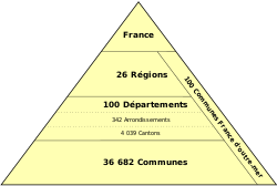 أقاليم فرنسا departments of France، (فرنسية: département، تـُنطق: [depaʁtəmɑ̃])، هي التقسيمات الادارية من الدرجة الثانية في فرنسا. وتنقسم فرنسا القارية (أي الأوروبية) إلى 22 منطقة régions، ينقسموا بدورهم إلى 96 إقليم départements، وهؤلاء بدورهم ينقسموا إلى 329 نقطة arrondissements، ينقسموا إلى 3,879 كانتون cantons يتألفون من 36,568 كوميون communes.