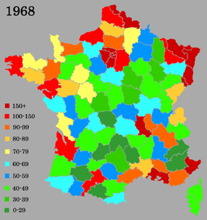 الكثافة السكانية في الأقاليم في تعداد 1968 (نسمة/كم²)