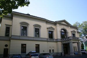 The idea did not come to immediate fruition in 1841. Money was a problem; also there were "doubts with regards to the adequacy of the scientific powers".[1] However, cross-disciplinary cooperation was flourishing. The first scientific congress in Norway was held in 1844. Two hundred people within the natural sciences and medicine convened for the fourth Scandinavian meeting of natural researchers. Finally, in 1857 a source of finances was found: professor of medicine Frants C. Faye.[3] The academy was founded, and inaugurated on 3 May 1857 under the name Videnskabsselskabet i Christiania.[4] "Christiania" was later changed to "Kristiania". The name Det Norske Videnskaps-Akademi i Kristiania was adopted in the early twentieth century,[5] and from 1924 "i Kristiania" was dropped, when Oslo voted to return the name to its original Norwegian name.[4]
