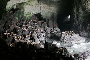 The 'Sea Lion Cave' in Oregon is among the largest complexes of underwater caves in the world, inhabited by a variety of sea life including sea lions. Entrance, sadly, is via a gift shop