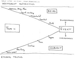 الأفكار البارزة | الحدث, ontology of the multiple, ontology is mathematics, the One is not, count-as-one, metapolitics |