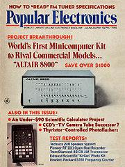 12. ^ H. Edward Roberts (1975). "Altair 8800 minicomputer". Popular Electronics. Ziff Davis. 7 (1): pp. 33–38. {{cite journal}}: |pages= has extra text (help); Unknown parameter |coauthors= ignored (|author= suggested) (help); Unknown parameter |month= ignored (help)
