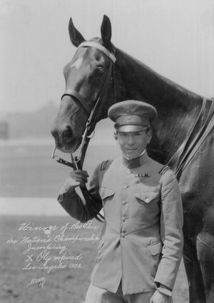Takeichi Nishi (Baron Nishi) was the gold medalist with his horse Uranus in the equestrian show jumping individual event. Nishi's gold medal is Japan's only gold medal in the equestrian event to this day. Nishi died in 1945 as an officer stationed in the defense of the island of Iwo Jima, and as such is an important character in Clint Eastwood's film, Letters from Iwo Jima.