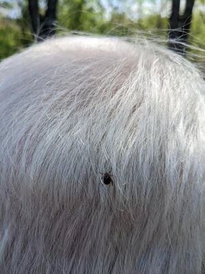 Ticks should be removed as soon as safely possible once discovered. They can be removed either by grasping tweezers as close to the mouth as possible and pulling without rotation; some companies market grooved tools that rotate the hypostome to facilitate removal. Chemical methods to make the tick self-detach, or trying to pull the tick out with one’s fingers, are not efficient methods.[15]