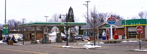 محطة ب پ عليها لافتة "الشعلة والشكل البيضاوي" في دوراند، مشيگن.