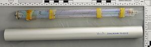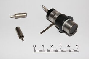 أنبوب گايگر/جايجر-مولر Geiger–Müller tube أو G–M tube هو the sensing element of the Geiger counter instrument used for the detection of ionizing radiation. It is named after Hans Geiger, who invented the principle in 1908,[1] and Walther Müller, who collaborated with Geiger in developing the technique further in 1928 to produce a practical tube that could detect a number of different radiation types.[2][3]