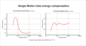 To correct this a technique known as "energy compensation" is applied, which consists of adding a shield of absorbing material around the tube. This filter preferentially absorbs the low energy photons and the dose response is "flattened". The aim is that sensitivity/energy characteristic of the tube should be matched by the absorption/energy characteristic of the filter. This cannot be exactly achieved, but the result is a more uniform response over the stated range of detection energies for the tube.[5]