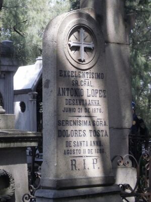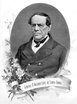 Antonio de Padua María Severino López de Santa Anna y Pérez de Lebrón (21 February 1794 – 21 June 1876),[1] often known as Santa Anna,[2] was a Mexican general, politician, and caudillo[3] who served as the 8th president of Mexico on multiple occasions between 1833 and 1855. He also served as vice president of Mexico from 1837 to 1839. He was a controversial and pivotal figure in Mexican politics during the 19th century, to the point that he has been called an "uncrowned monarch",[4] and historians often refer to the three decades after Mexican independence as the "Age of Santa Anna".[5]